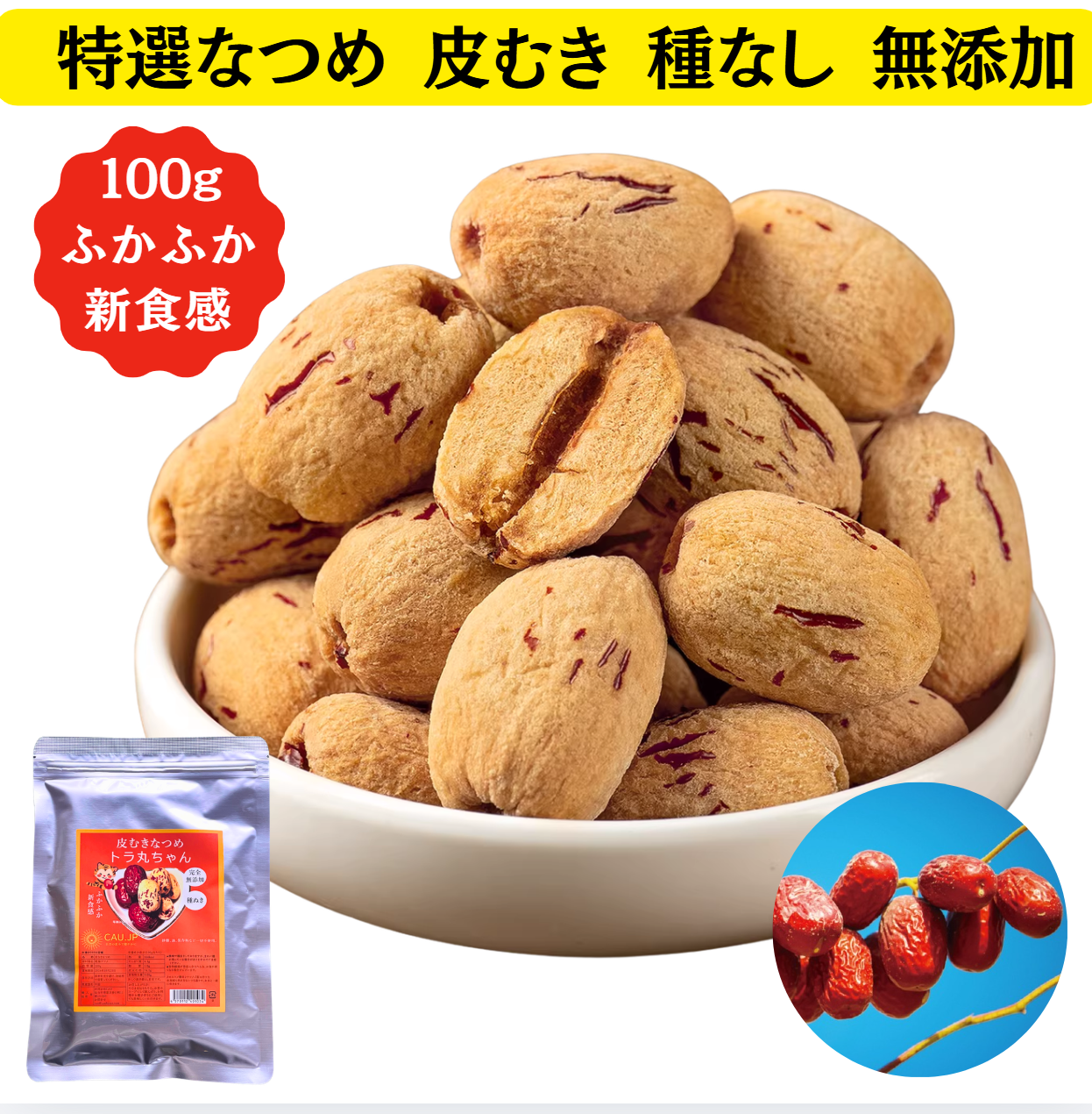 トラ丸ちゃん 皮むきなつめ つまみ棗 100g 個包装 皮剥き種ぬき 食べやすい 添加物不使用 砂糖不使用 なつめ ナツメ ドライフルーツ ノンオイル そのまま食べれる お菓子 乾燥 大棗 温活 自然乾燥 食物繊維